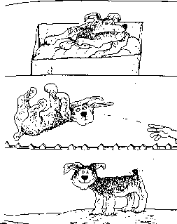 Ich wollte mich mit Mischkos Pinkelgewohnheiten nicht abfinden und begann deshalb ein wohldurchdachtes Erziehungsprogramm: „Es ist verboten, auf den Teppich zu pinkeln", sagte ich langsam und deutlich zu ihm mit erhobenem Zeigefinger. „Verboten, hörst du? Pfui!" Jedesmal, wenn Mischko wieder auf den Teppich pinkelte, wurde meine Stimme strenger. Hatte er aber sein Geschäft einmal irrtümlich im Ziergarten gemacht, überschüttete ich ihn mit Lob, Liebkosungen und Leckerbissen.
